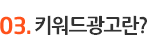 ƯÁ¤ÇÑ ´Ü¾î(Ű¿öµå)¸¦ ±¸¸ÅÇÏ¿© ÇØ´ç Ű¿öµå °Ë»ö½Ã ùÆäÀÌÁöÀÇ »ó´Ü¿¡ Ãâ·Â½ÃÄÑÁÖ´Â ¹æ½ÄÀ¸·Î Ű¿öµåÀÇ °Ë»ö·®¿¡ µû¶ó ¿ùº° °¡°ÝÀÌ Á¤ÇØÁý´Ï´Ù.(Ű¿öµå¿¡ µû¶ó ¿ù 20¸¸¿ø¿¡¼­100¸¸¿øÀÌ»ó ÇÏ´Â °æ¿ìµµ ÀÖ½À´Ï´Ù.)