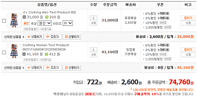 ȸ¿ø ·Î±×ÀÎ ÈÄ ÁÖ¹®¼­ ÆäÀÌÁö¿¡¼­ ±¸¸Å°í°´ÀÌ È¸¿øº° ÄíÆùÀû¿ë/±×·ìȸ¿ø ÀÚµ¿ÇÒÀÎ/Àû¸³±Ý »ç¿ë, »çÀºÇ°Àû¿ë µî ÇýÅûç¿ë ½Ã ½Ç½Ã°£À¸·Î°¡°Ýº¯µ¿ ¹× ÇýÅÃÀÌ Àû¿ëµÈ ´ÙÀ̳ª¹ÍÇÑ UI°¡ Á¦°øµË´Ï´Ù.À̶§ ÄíÆùÀÇ °æ¿ì °ü¸®ÀÚ°¡ ¼³Á¤ÇÑ ±×·ìÇÒÀΰú Áߺ¹»ç¿ë, Àû¸³±Ý°úÀÇ Áߺ¹»ç¿ë, »çÀºÇ°°úÀÇ Áߺ¹»ç¿ë °¡´É¿©ºÎ¿¡ µû¶ó ÁÖ¹®¼­¿¡¼­µµ ½Ç½Ã°£À¸·Î ´ÙÀ̳ª¹ÍÇÏ°Ô Àû¿ëµË´Ï´Ù.