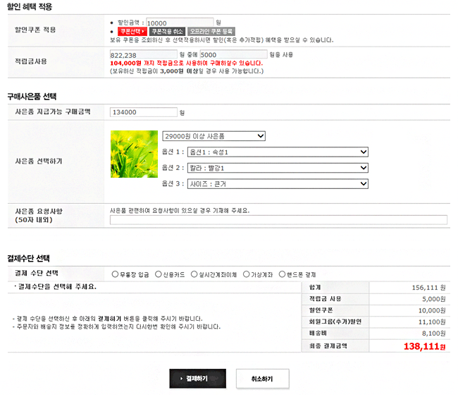 Àå¹Ù±¸´Ï ¹× ÁÖ¹®¼­¿¡ ÄíÆù,»çÀºÇ°,Àû¸³±Ý,ȸ¿ø±×·ìÇÒÀÎ µî ÁÖ¿äÇýÅà ǥ½Ã