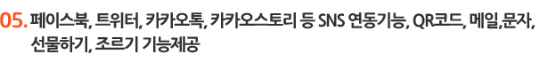 ÆäÀ̽ººÏ, Æ®À§ÅÍ, īī¿ÀÅå, īī¿À½ºÅ丮 µî SNS ¿¬µ¿±â´É, QRÄÚµå, ¸ÞÀÏ,¹®ÀÚ,¼±¹°Çϱâ Á¶¸£±â ±â´É Á¦°ø