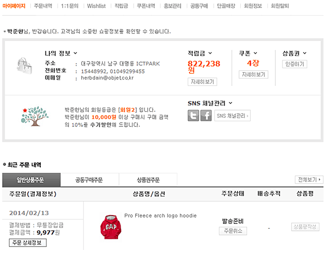ȸ¿øÁ¤º¸´Â ¹°·Ð ÁÖ¹®³»¿ª, ¹®ÀÇ, À§½Ã¸®½ºÆ®, ÄíÆù.Àû¸³±Ý º¸À¯, È«º¸°ü¸®, ¼Ò¼È±¸¸Å, Àü¸³±Ý Çö±ÝÀüȯ ½Åû µî ȸ¿øº° ¸ðµç ¼îÇÎȰµ¿³»¿ªÀ»¸¶ÀÌÆäÀÌÁö¿¡¼­ È®ÀÎ °ü¸®°¡´ÉÇÕ´Ï´Ù.