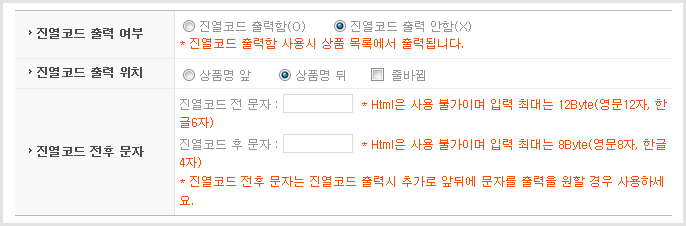 • - »óǰ µî·Ï/¼öÁ¤½Ã ÀÔ·ÂÇÑ Áø¿­ÄÚµåÀÇ Ãâ·Â ¹× À§Ä¡¸¦ ¼³Á¤ÇÒ ¼ö ÀÖ½À´Ï´Ù.
