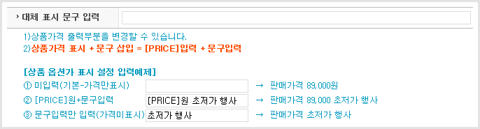 - »óǰ °¡°ÝÀ» Ç¥ÇöÇÏ°í ½ÍÀ» °æ¿ì [PRICE]·Î ÀÔ·ÂÇϽñ⠹ٶø´Ï´Ù.